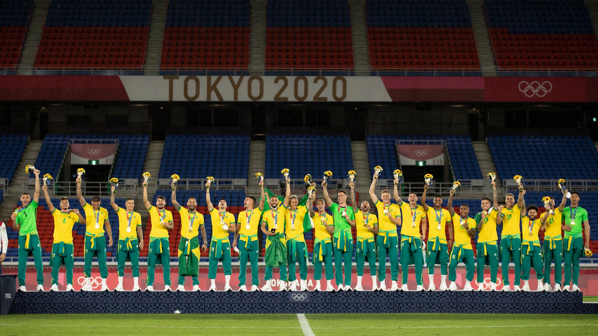 Em Tóquio, o Brasil já foi campeão olímpico com Italo Ferreira (surfe), Rebeca Andrade (ginástica artística), Martine Grael e Kahena Kunze (vela), Ana Marcela Cunha (maratona aquática), Isaquias Queiroz (canoagem), Hebert Conceição (boxe) e agora com o futebol masculino. Só neste sábado, o Brasil conquistou três ouros.