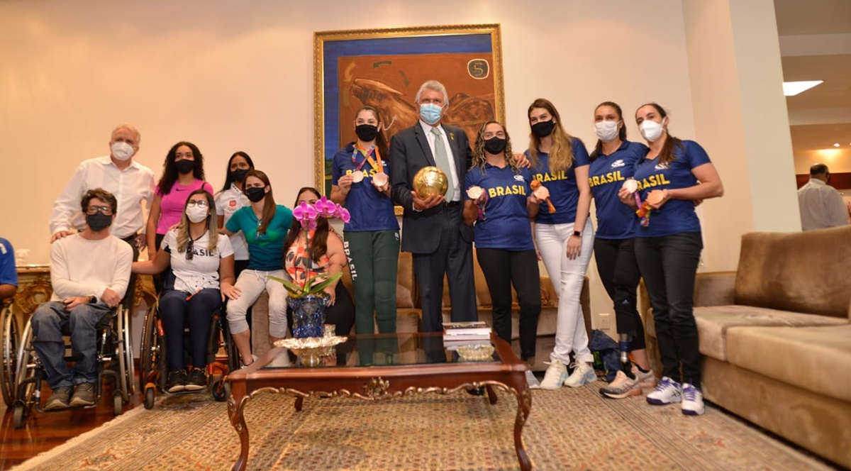 O governador Ronaldo Caiado recebeu, nesta quarta-feira (5), atletas olímpicos e paralímpicos no Palácio das Esmeraldas para um almoço. O grupo foi formado na maioria por esportistas que recebem a bolsa Pró-Atleta, um auxílio que o governo estadual cede aos atletas de alto rendimento do estado de Goiás e o governador destacou que o programa terá continuidade além do seu governo.