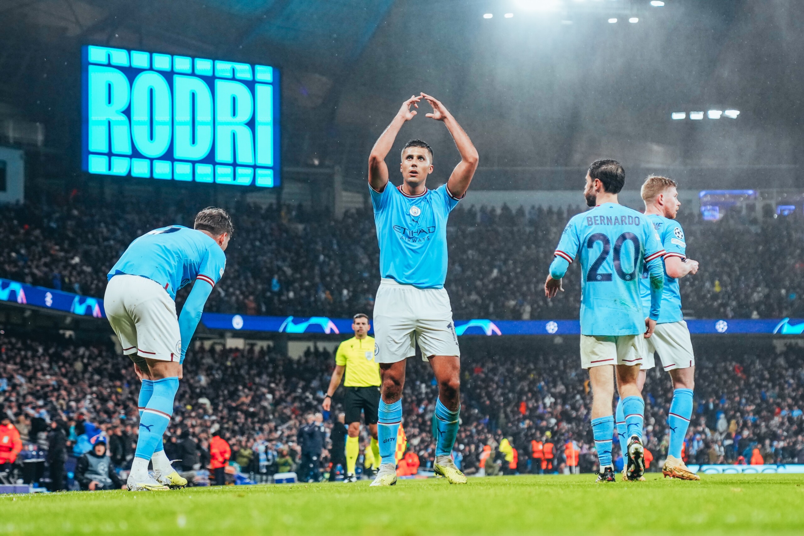 O trabalho do goleiro suíço foi em vão aos 24 minutos, no momento em que Upamecano perdeu a bola para Grealish perto da área. O atacante tocou de calcanhar para Haaland, que dominou pelo lado direito e cruzou para Bernardo Silva fazer de cabeça. Aos 30, foi a vez de Haaland balançar a rede e anotar seu 11º gol na Liga dos Campeões, após receber assistência ,de cabeça, de Stones.