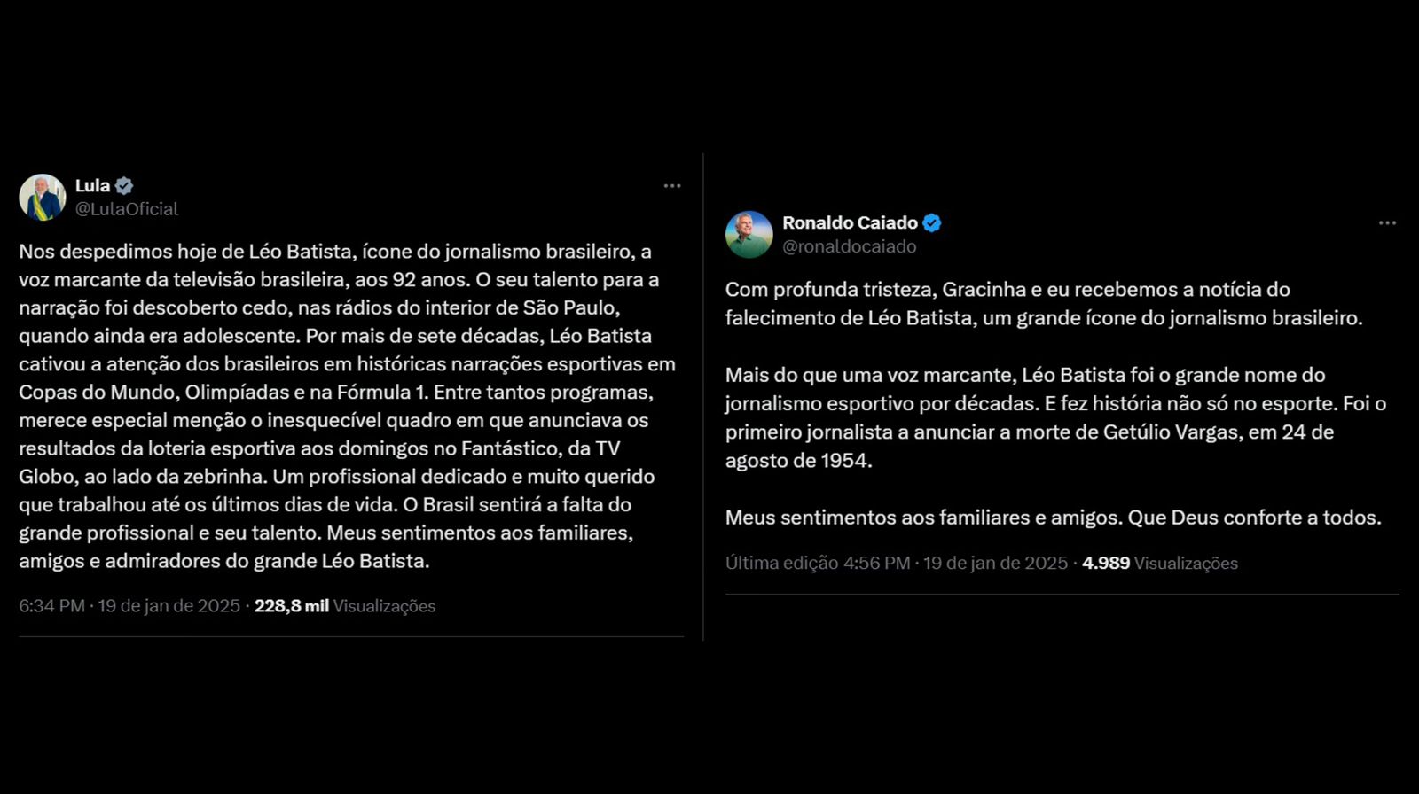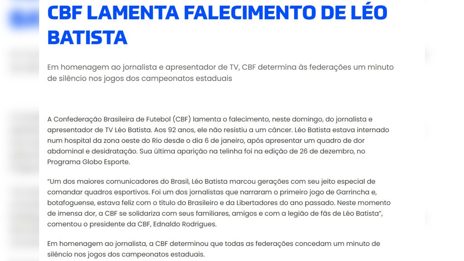 A morte do jornalista e apresentador Léo Batista, neste domingo (19/01), aos 92 anos, comoveu a imprensa nacional e todo o mundo do esporte. A voz marcante ocupa uma condição indiscutível de nome histórico da comunicação do país. Léo Batista lutava contra um tumor no pâncreas. Ele foi internado no último dia 6 de janeiro e resistiu por 13 dias.