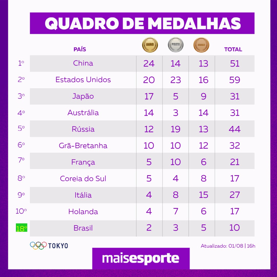 🥇🥈🥉 Confira o quadro de medalhas dos @jogosolimpicos neste domingo 1/08 às 16h.