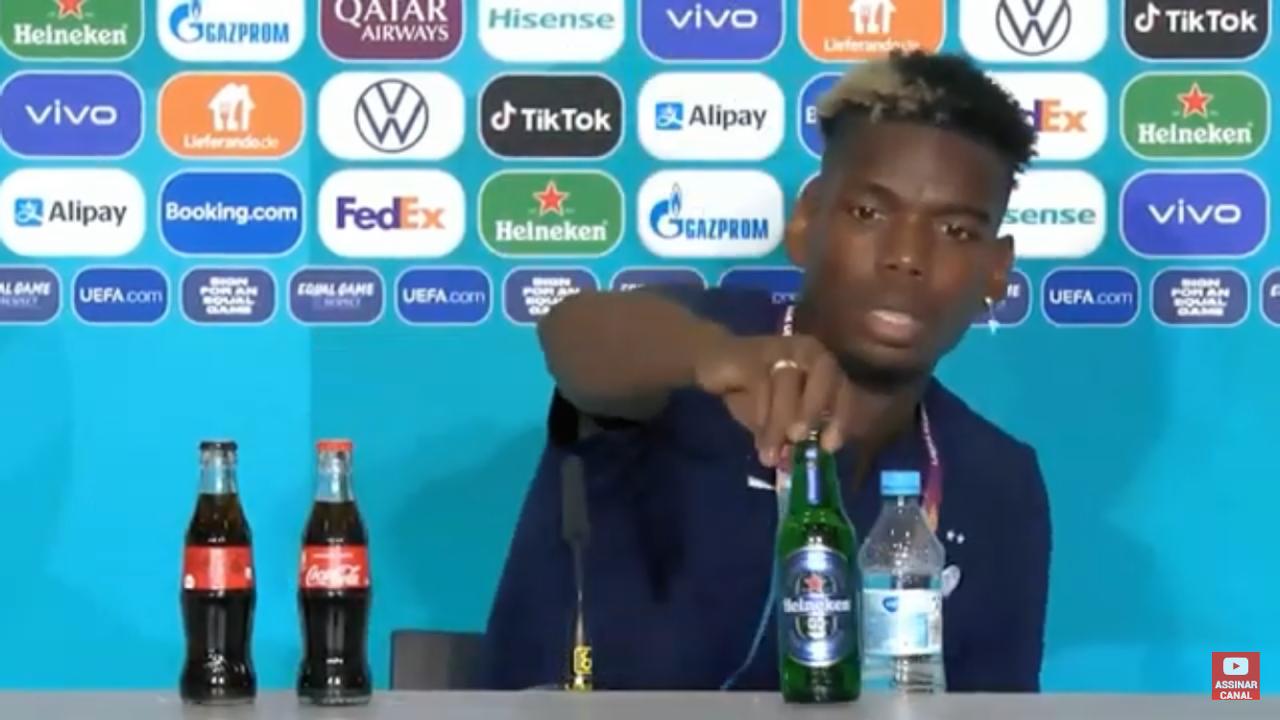 Depois de CR7 tirar refrigerante, Pogba retira cerveja de coletiva na Euro