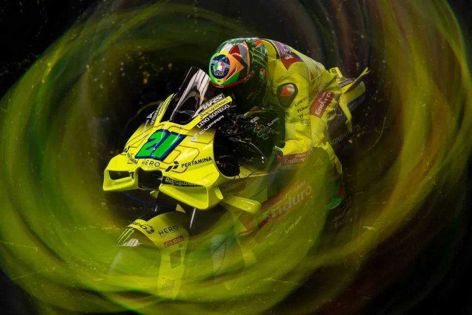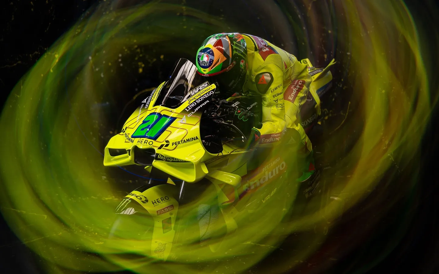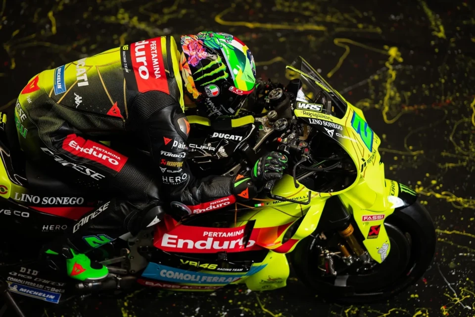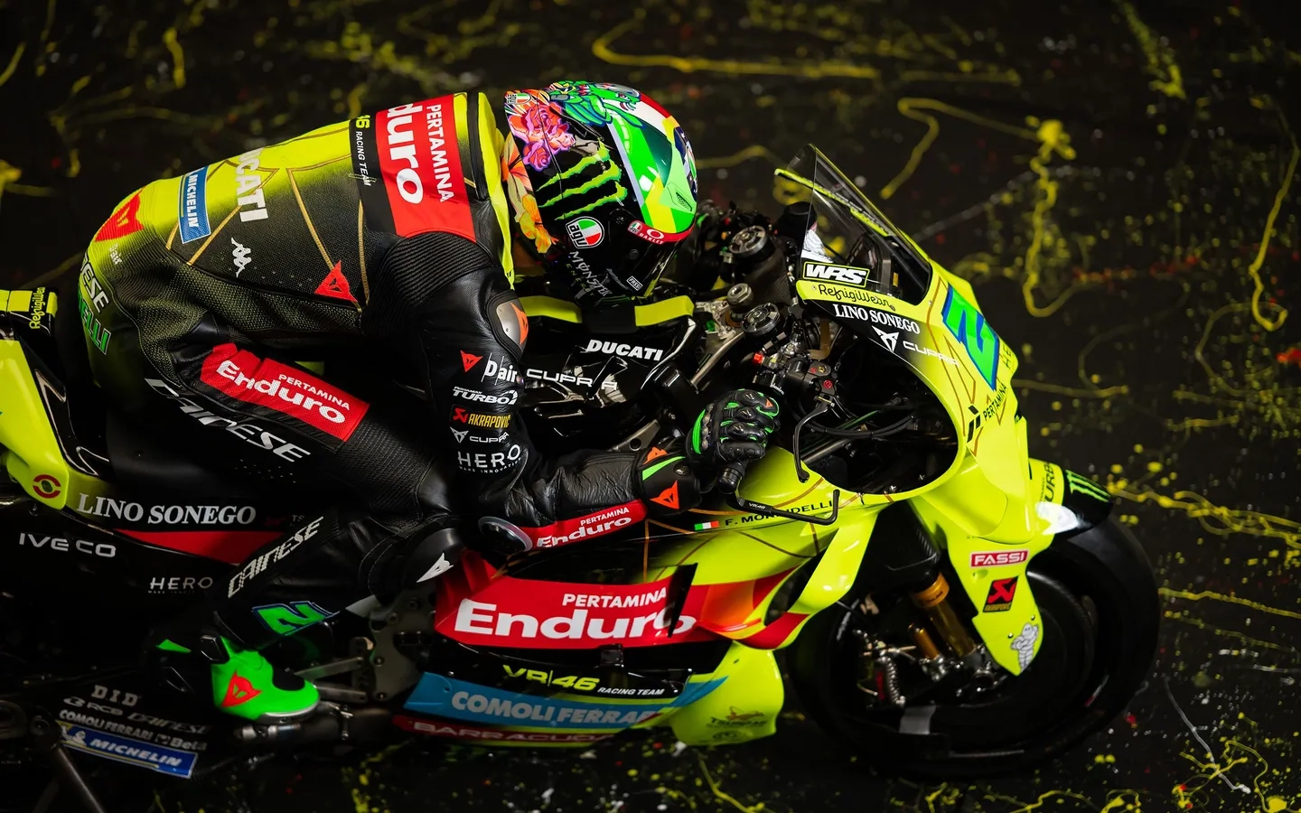 Nesta quarta-feira (14/01), foi a vez da Pertamina Enduro VR46 Racing. Diferentemente da Pramac, a equipe de Valentino Rossi resolveu promover alterações em relação à pintura usada no ano passado. A principal novidade é a entrada do preto no lugar do branco como cor secundária da moto. Já o tradicional verde limão segue como maior destaque.