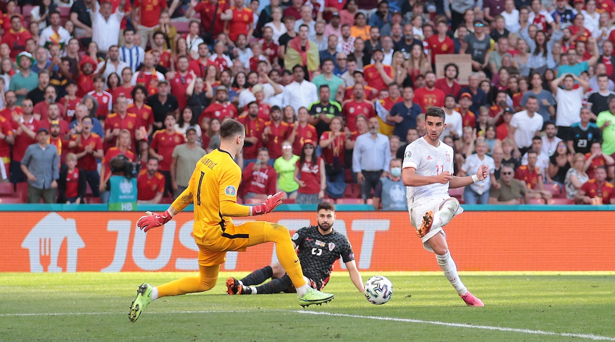 Longe de repetir a falta de finalizações da etapa inicial, a Espanha era outra no segundo tempo. Mais vertical, buscava o gol a todo momento. Aos 26, balançou as redes com Morata, mas o lance foi anulado por impedimento. Aos 31, não houve qualquer irregularidade. Ferrán Torres recebeu na direita, aproveitou falha gritante de Gvardiol na marcação a bateu na saída do goleiro Livakovic.