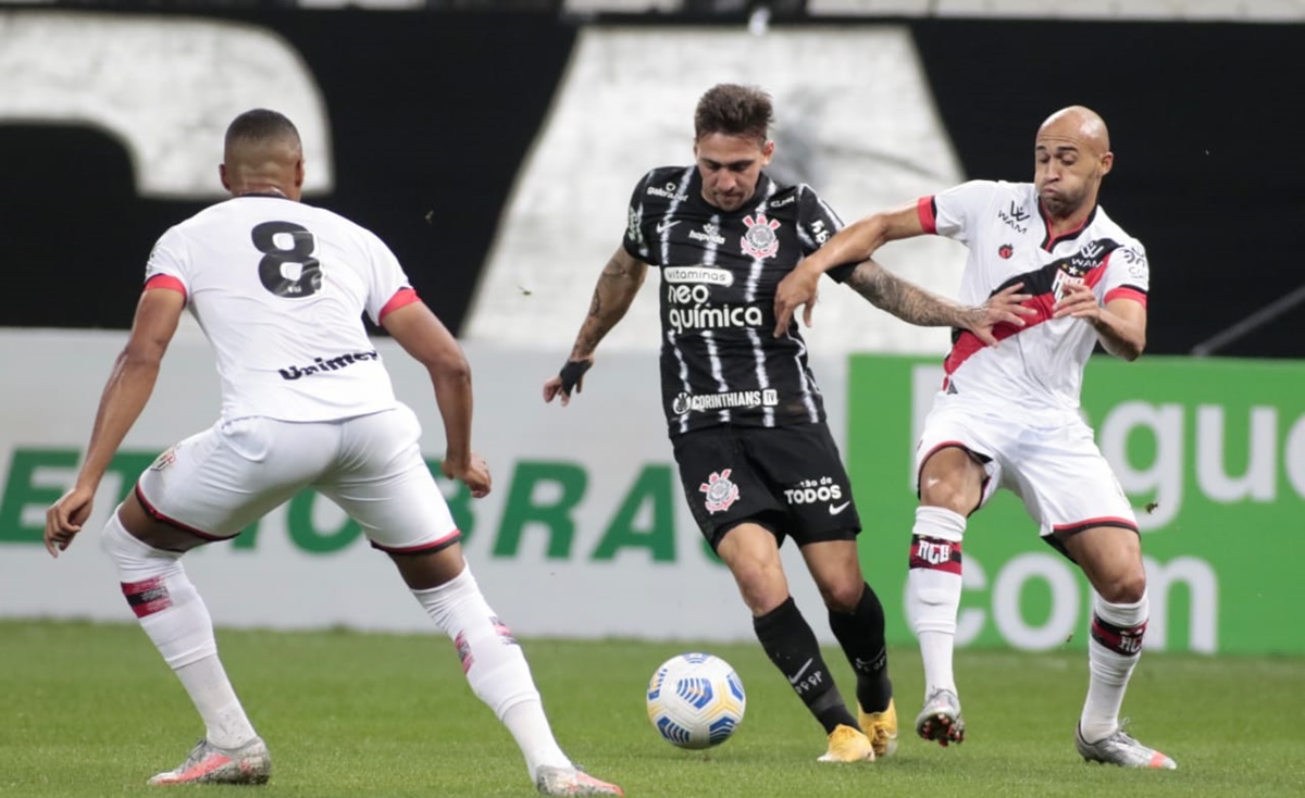 O Atlético não temeu o Corinthians em São Paulo e começou o jogo com as linhas ofensivas altas. O Dragão até marcou com João Paulo, mas o atacante estava em posição irregular. Após um começo melhor dos visitantes, o Timão acordou e obrigou Fernando Miguel a fazer duas boas defesas. A primeira foi com Ramiro, que bateu da direita, já a segunda foi em uma finalização de Piton, que novamente parou no goleiro atleticano.