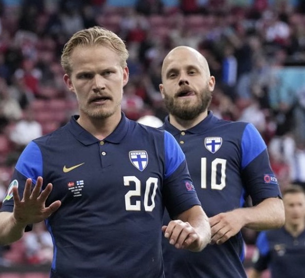 A primeira bola na rede adversária dos finlandês na história da Euro veio numa cabeçada do camisa 20 Joel Pohjanpalo. O atacante apareceu entre dois marcadores. O goleiro Schmeichel falhou no lance. A festa foi comedida entre os atletas, ainda desanimados com o ocorrido com um companheiro de profissão.