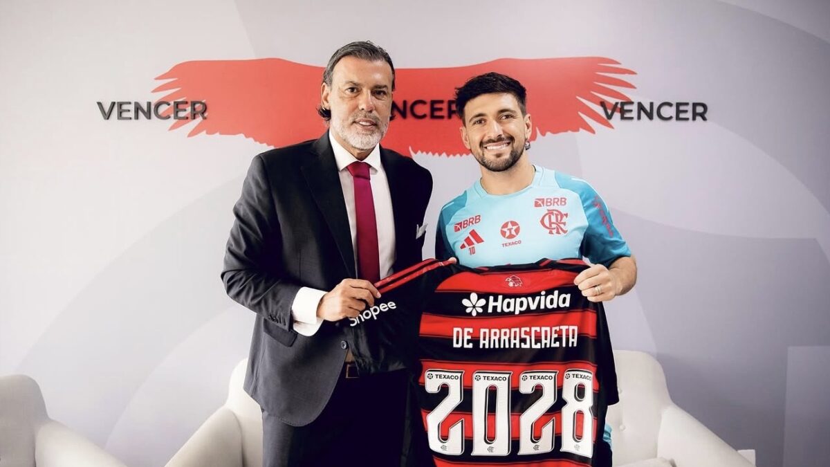 O Flamengo anunciou nesta sábado (8/11) a renovação de contrato de Giorgian De Arrascaeta até dezembro de 2028, com possibilidade de extensão por mais uma temporada caso metas sejam atingidas. Jogador e clube entraram em acordo na sexta-feira (7/11).