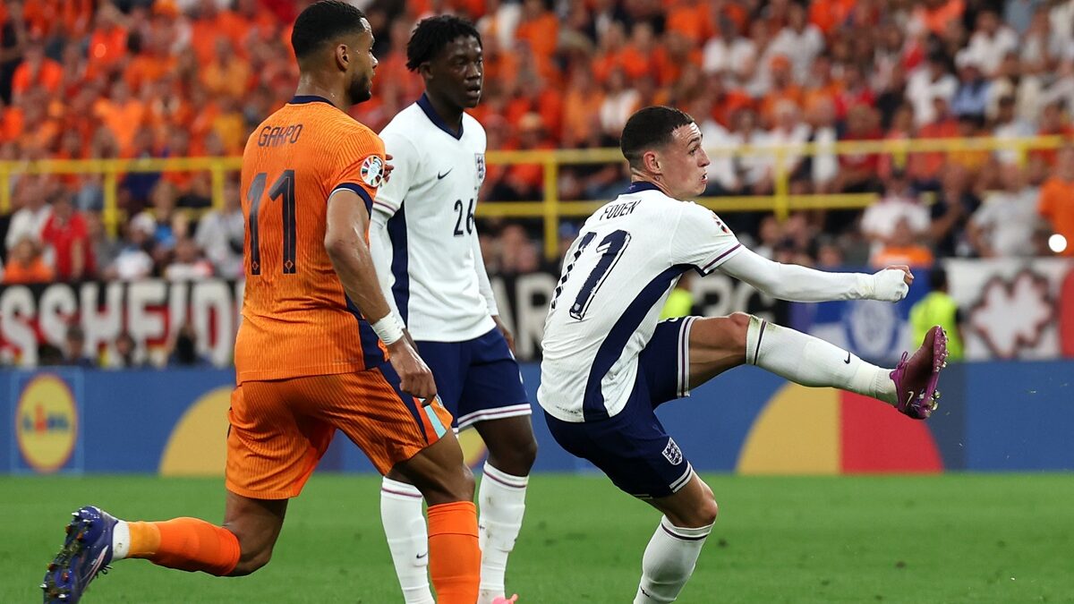 Assim como na fase anterior, quando precisou reagir diante da Suíça, a Inglaterra conseguiu responder na sequência, em cobrança de pênalti de Harry Kane, aos 18 minutos. Com a igualdade, os ingleses passaram a ter mais controle do jogo e quase viraram com Fodden, mas Dumfries salvou uma bola em cima da linha.