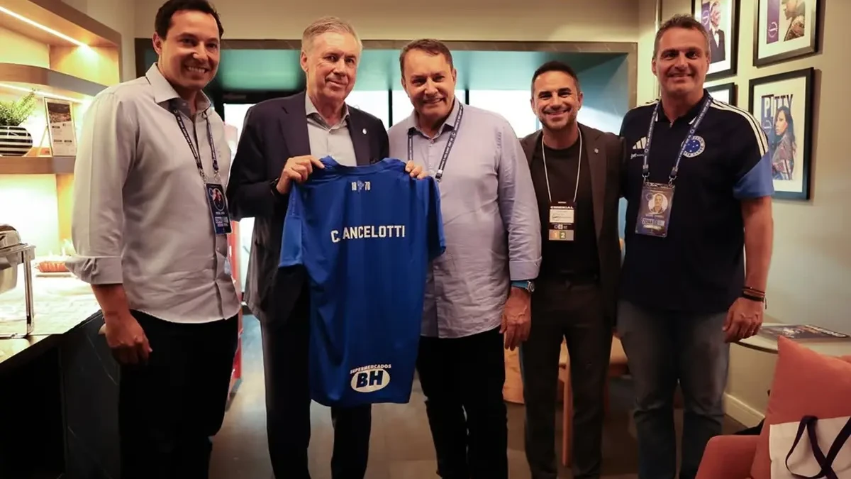 O técnico da seleção brasileira, Carlo Ancelloti segue de olho nos atletas brasileiros, já pensando na Copa do Mundo. Nesta última quarta-feira (25/02), o comandante compareceu no estádio Mineirão, para o confronto entre Cruzeiro e Corinthians, pelo Brasileirão, que terminou empatado em 1 a 1. Antes da bola rolar, o treinador foi recepcionado pela direção do estádio e pelos dirigentes da equipe mineira, onde recebeu uma camisa do clube.
