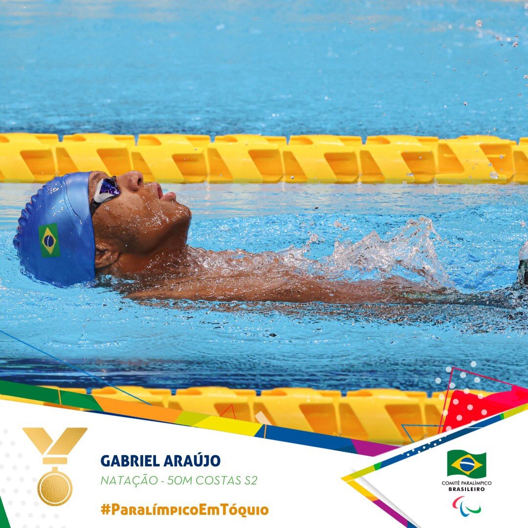 Gabriel Araújo brilhou mais uma vez em Tóquio. O nadador de 19 anos, que compete na classe S2 (atletas com braços, pernas ou tronco limitados), conquistou sua terceira medalha na Paralimpíada, a segunda de ouro, ao dominar a prova dos 50 metros costas e chegar em primeiro com grande vantagem para os demais competidores. Com o pódio dourado, ele ajuda o Brasil a se aproximar do recorde das 21 medalhas de ouro obtidas nos Jogos de Londres-2012.