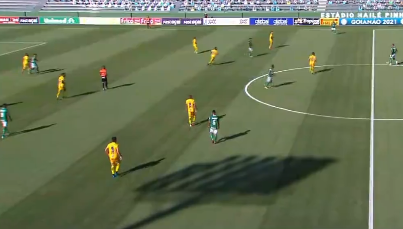 O jogo caminhou sem emoções na primeira etapa e só teve um bom lance na reta final. Aos 46 minutos, em um dos poucos momentos lúcidos do ataque esmeraldino, Heron cruzou da esquerda e Madison cabeceou no contrapé de Cleriston, mas o zagueiro Tales salvou em cima da linha.