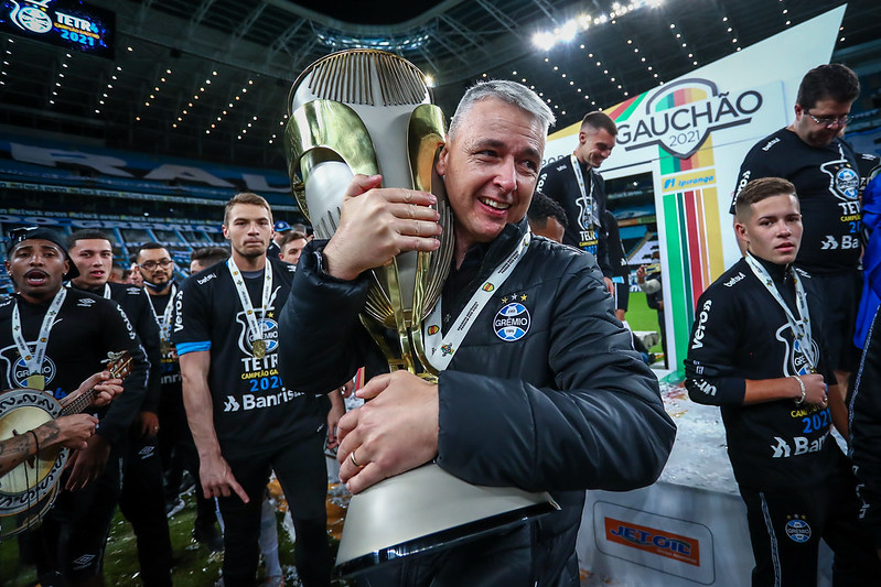 Em um jogo marcado pelo brilho de jovens talentos formados em casa, como o goleiro Brenno e o atacante Ferreira, o Grêmio garantiu o 40º título do Campeonato Gaúcho ao empatar por 1 a 1 com o rival Internacional neste domingo, no jogo de volta da final. Como venceu o Gre-Nal por 2 a 1 na partida de ida, o time comandado por Tiago Nunes entrou em campo jogando por um empate e faturou o tetra.