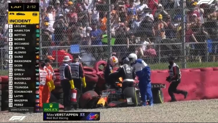 Verstappen deixou o carro tonto. Com atendimento médico rápido, logo se restabeleceu e até acenou ao público. Por medida de segurança, foi encaminhado ao Centro Médico dentro do circuito. Enquanto isso, o inglês mostrava preocupação com o adversário, pedindo informações pelo rádio. A corrida foi interrompida e o inglês acabou punido em 10 segundos, sendo considerado o culpado pelo acidente. Verstappen voltou ao cockpit antes da relargada.