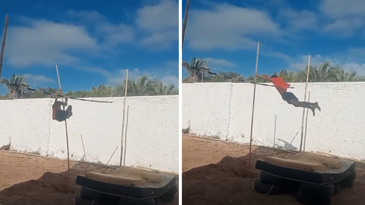 Menino viraliza ao postar salto com vara em local improvisado e é notado por campeão olímpico