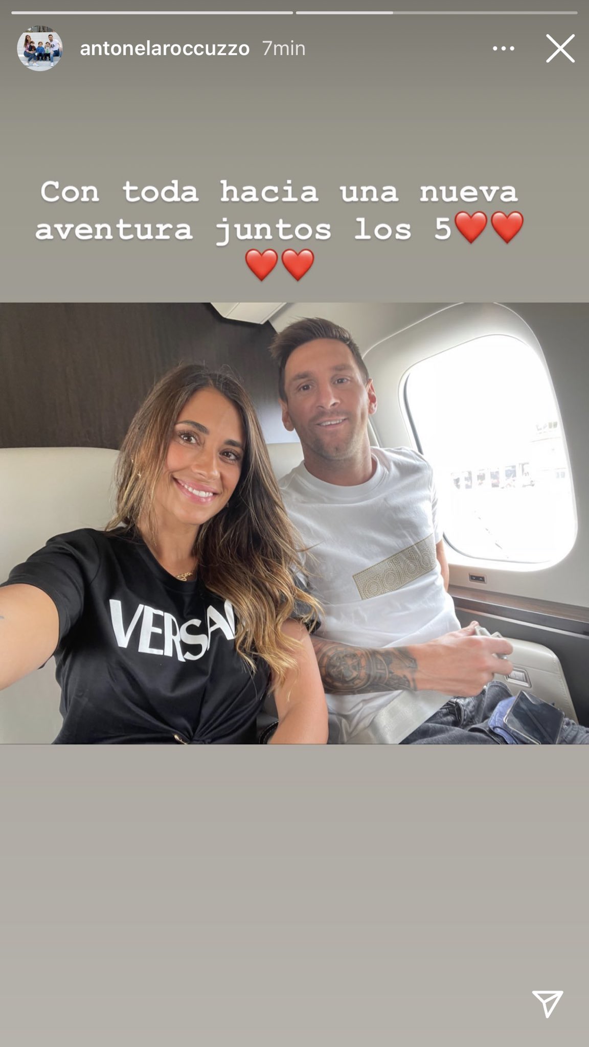 Saindo de Barcelona, já dentro do avião que seguirá para Paris, Antonela Roccuzzo, esposa de Lionel Messi, publicou uma foto em seu perfil pessoal no Instagram. “Novo desafio” foi a maneira de definir à ida do marido ao PSG.
