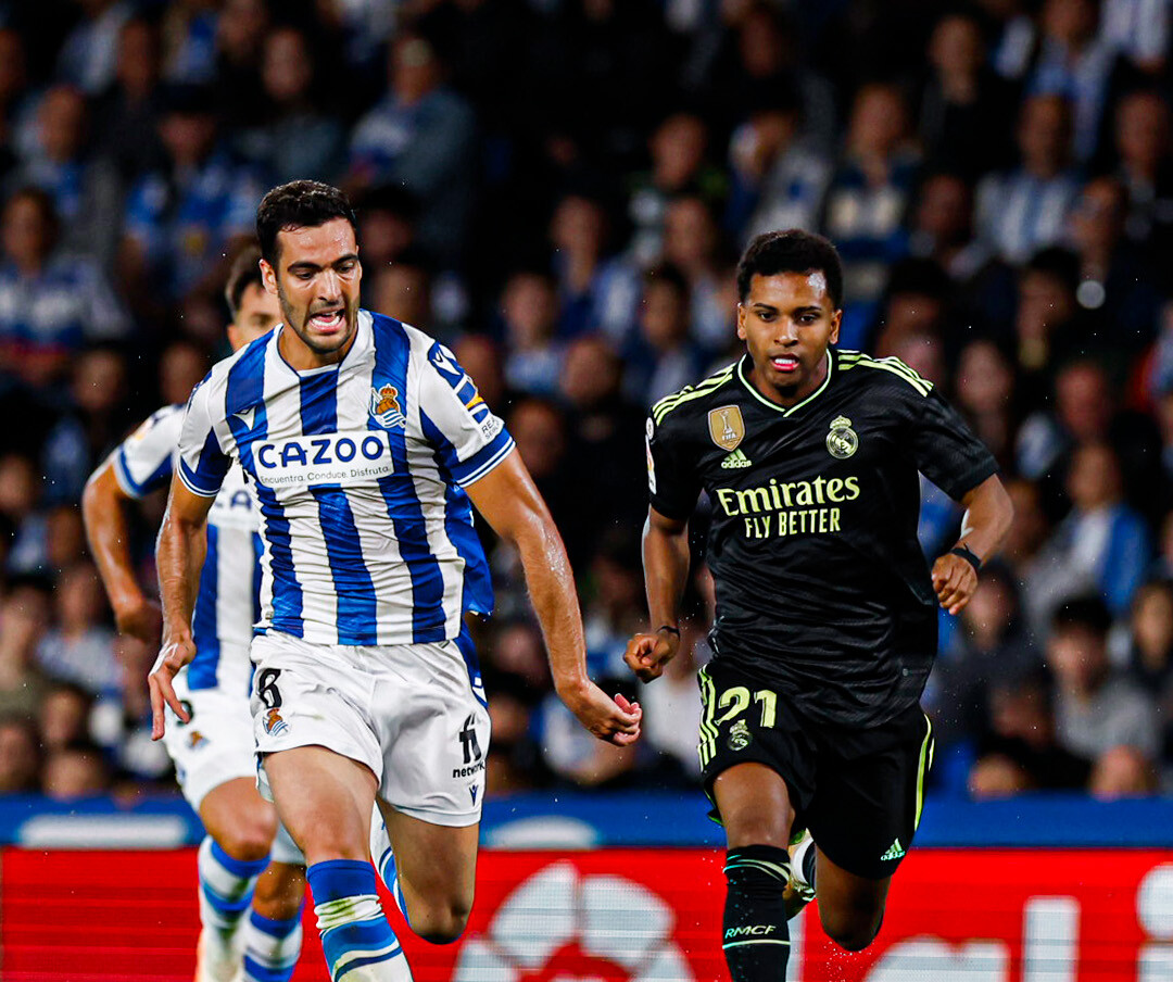 O Real Madrid complicou ainda mais o sonho de se manter vivo na briga pelo título do Campeonato Espanhol ao amargar a derrota de 2 a 0 para o Real Sociedad nesta terça-feira, no estádio Anoeta. O vilão da partida foi o brasileiro Militão, que errou feio na saída de bola e deu um presente para o atacante Kubo abrir o placar. Barrenetxea definiu a vitória com um gol no final.
