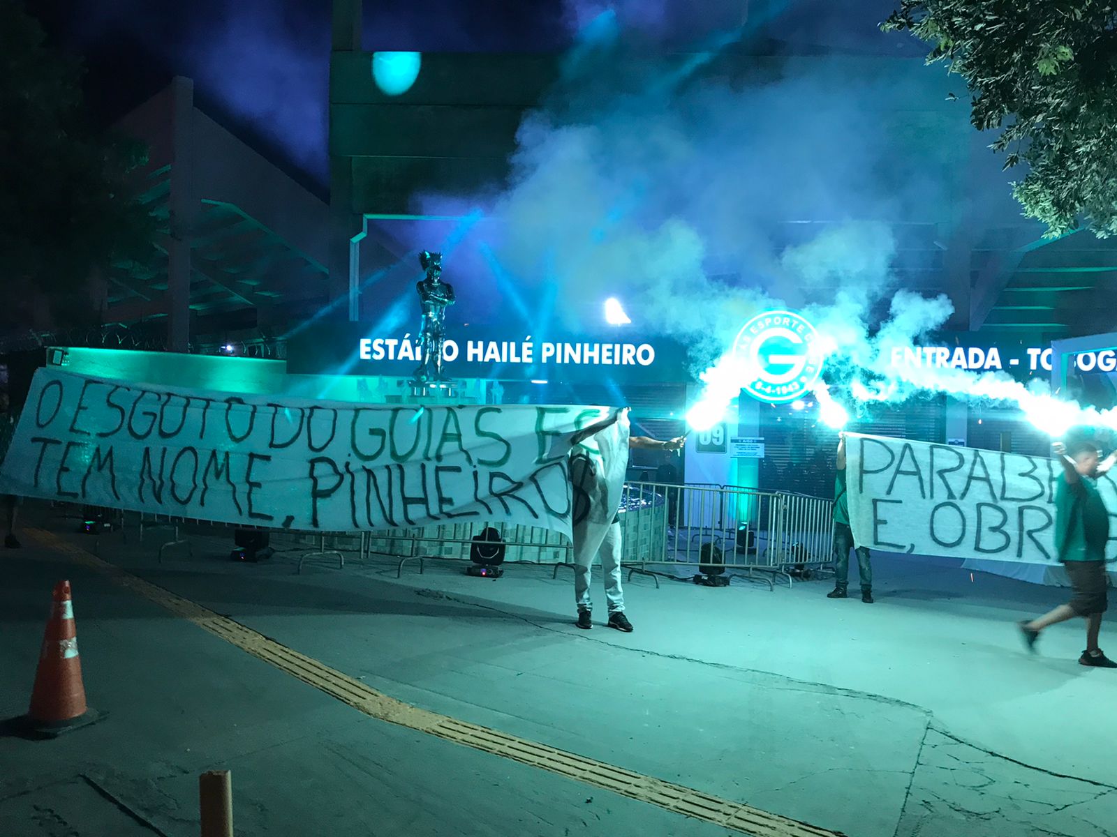 Os protestos foram direcionados à família Pinheiro. Atualmente presidido por Paulo Rogério Pinheiro, o clube tem como grandes nomes em sua história o Sr Hailé Pinheiro e Edmo Pinheiro. “O esgoto do Goiás EC tem nome, Pinheiro”, em outra faixa foi possível ler a seguinte mensagem “Parabéns Goiás EC e obrigado por nada”.