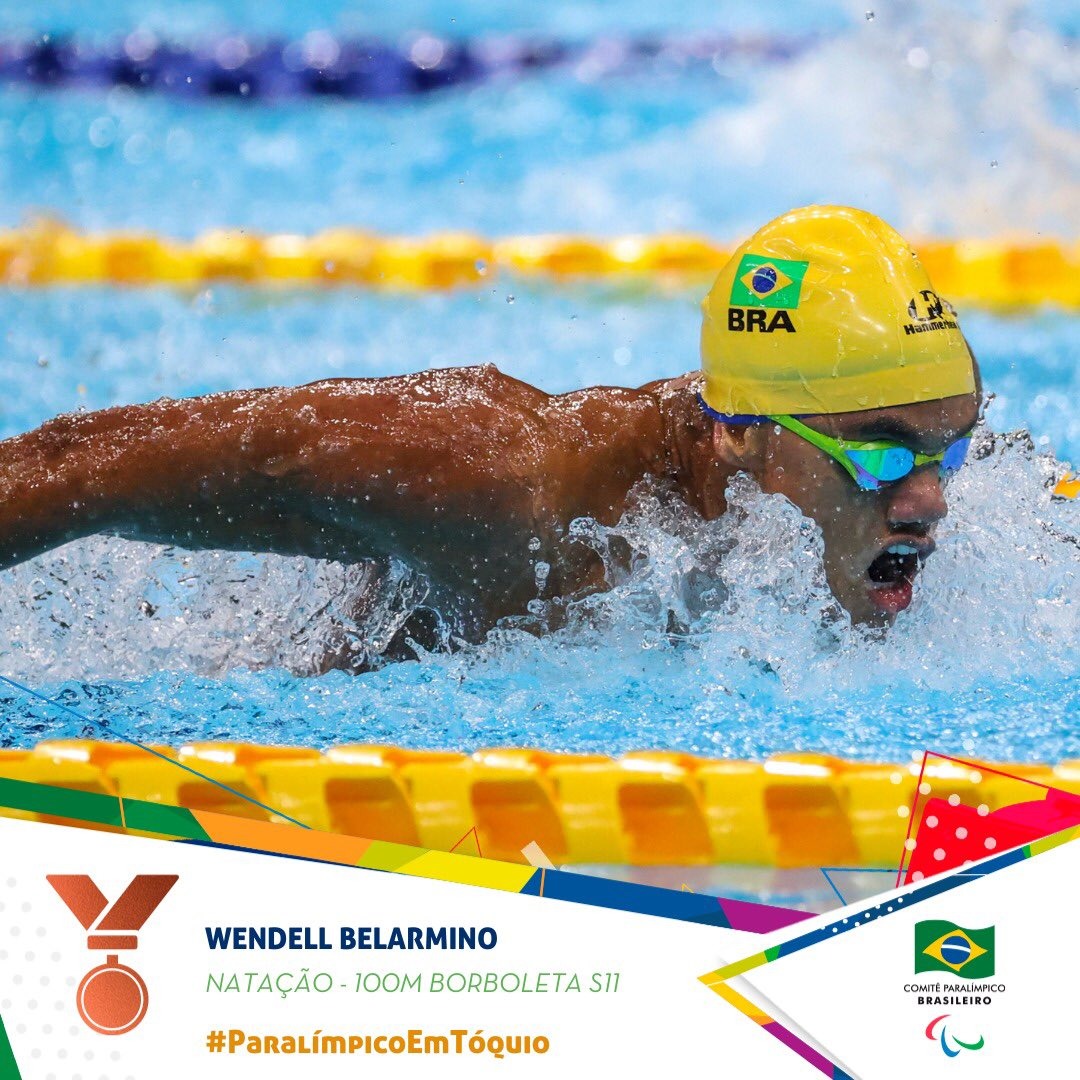 Wendell Belarmino já tinha um ouro e uma prata na Paralimpíada de Tóquio, mas ainda foi atrás de completar os três tipos de medalha e levou o bronze nos 100 metros borboleta da classe S11 (atletas cegos), em uma incrível recuperação no final, e faturou a única medalha do Brasil no último dia da natação nos Jogos.