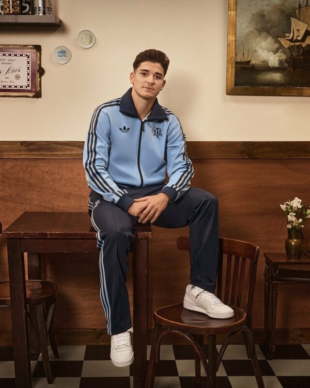 Além da camisa de jogo, a coleção também inclui quatro novos produtos: uma jaqueta celeste, com detalhes em azul marinho e um visual retrô, que traz novamente o logo “Trefoil” e o escudo da AFA; uma calça azul marinho com três listras em azul celeste, que combina com a jaqueta; e ainda uma linha casual com camiseta e shorts nas cores azul petróleo e celeste.