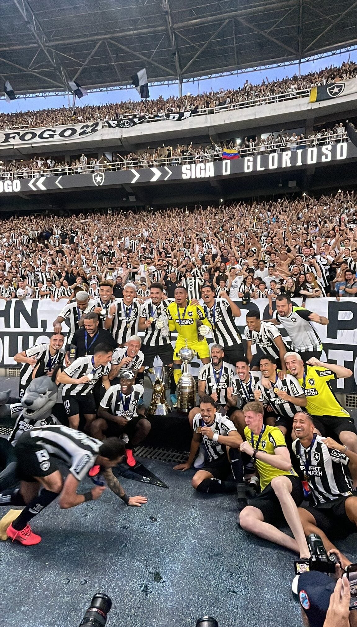 Nas redes sociais, o Botafogo postou uma foto do elenco campeão ao lado da taça do Brasileirão. Confira.