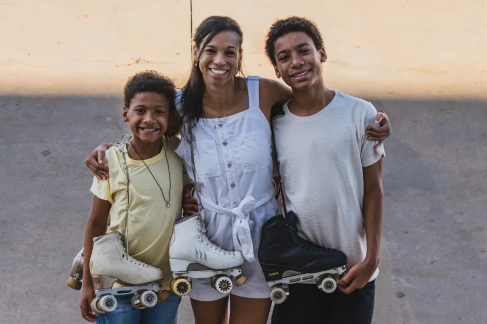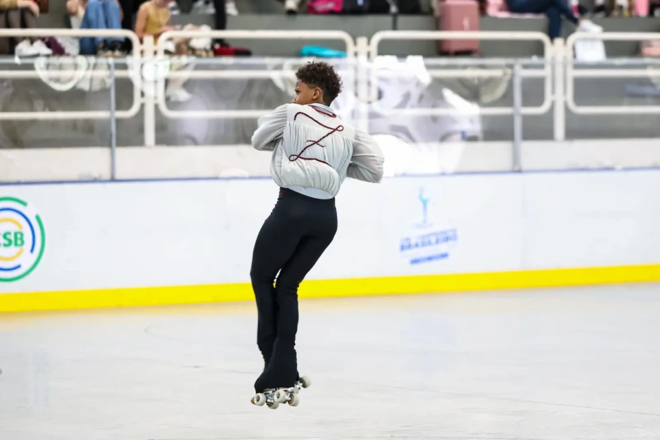 Gustavo cresceu em meio à patinação. A mãe, professora de Educação Física, iniciou no esporte aos nove anos, em Santos, e construiu trajetória como atleta da seleção brasileira, com participações em competições internacionais e grupos de shows. “Me apaixonei pela patinação artística lá em Santos”, conta ela. Gustavo e o irmão Miguel, de 14 anos, cresceram dentro desse universo e os dois patinam.