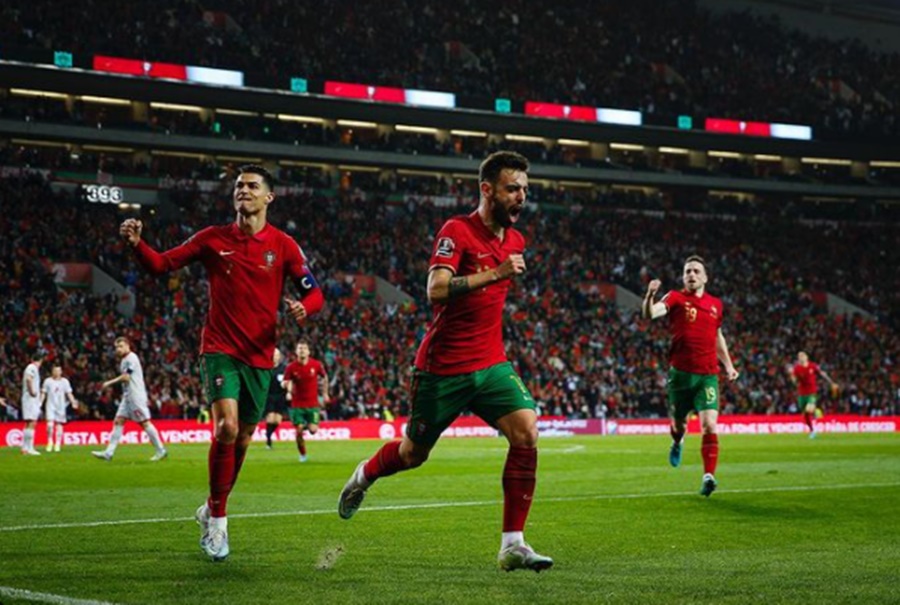No erro de saída de bola da Macedônia, Bruno Fernandes cortou e mandou para o astro sair mais uma vez na cara do goleiro Dimitrievski. Optou, porém, em devolver ao companheiro e o chute rasante morreu nas redes. Festa em vermelho e verde.