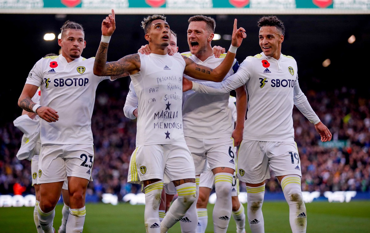 Raphinha faz gol pelo Leeds e homenageia Marília Mendonça