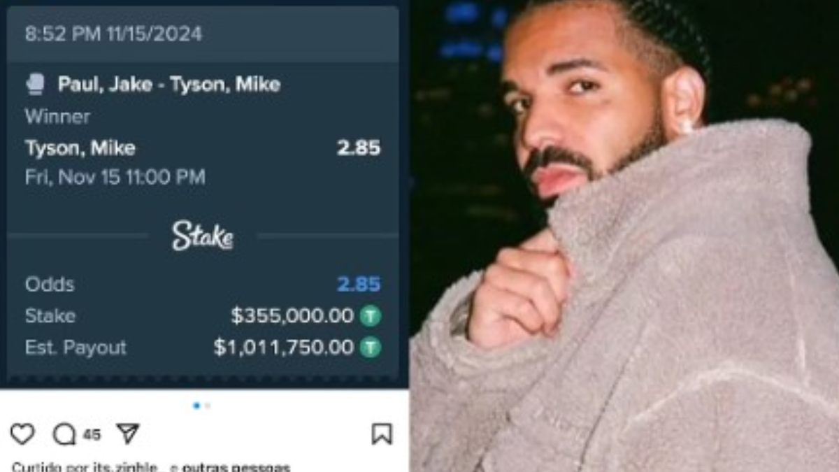 Dois milhões de reais, ou 355 mil dólares: essa foi a bolada que o rapper canadense Drake perdeu por apostar em vitória de Mike Tyson contra Jake Paul em luta que aconteceu na noite da última sexta-feira (15), no Texas, Estados Unidos.