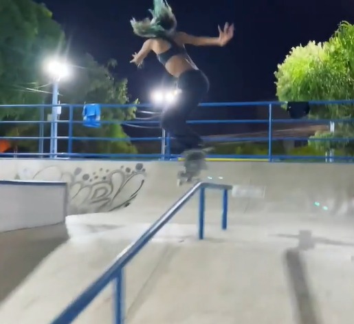 Nas imagens, Rayssa Leal sobe uma rampa e salta girando no ar, em seguida pousa com a base invertida no corrimão, deslizando até sair do aparelho. “The new one” – “A nova”, em tradução literal” -, escreveu a skatista.