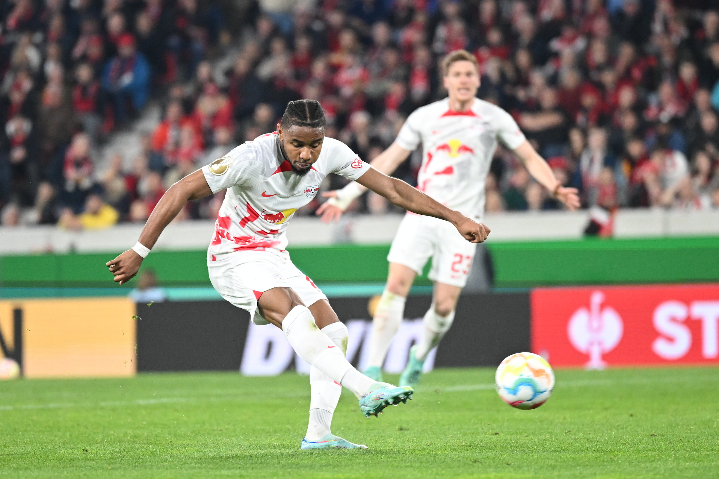 O RB Leipzig fez um primeiro tempo arrasador nesta terça-feira, em jogo único das semifinais da Copa da Alemanha, marcou quatro gols ainda no primeiro tempo e superou o Freiburg por 5 a 1 no Europa Park Stadium, casa do adversário. Agora, aguarda pelo embate entre Stuttgart e Eintracht Frankfurt, marcado para as 15h45 de quarta-feira (horário de Brasília), para saber qual será seu adversário na grande final.