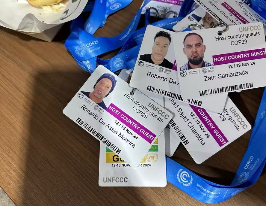 Craque dos gramados, Ronaldinho Gaúcho, que hoje também é conhecido como o “Rei dos rolês aleatórios” é um dos convidados do governo do Azerbaijão para a 29ª Conferência das Nações Unidas sobre Mudança Climática (COP29), realizada em Baku. No primeiro momento, a credencial do ex-jogador foi vazada na internet e agora o bruxo já compartilhou uma foto no evento em suas redes sociais.