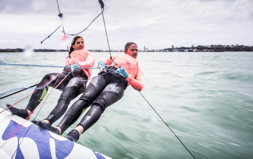 São dez duplas e quem terminar a disputa em primeiro perde dois pontos, quem ficar em segundo perde quatro, e assim por diante. Pela diferença de pontos ser bem apertada, as brasileiras podem inclusive ficar fora do pódio caso façam uma regata ruim no último dia.