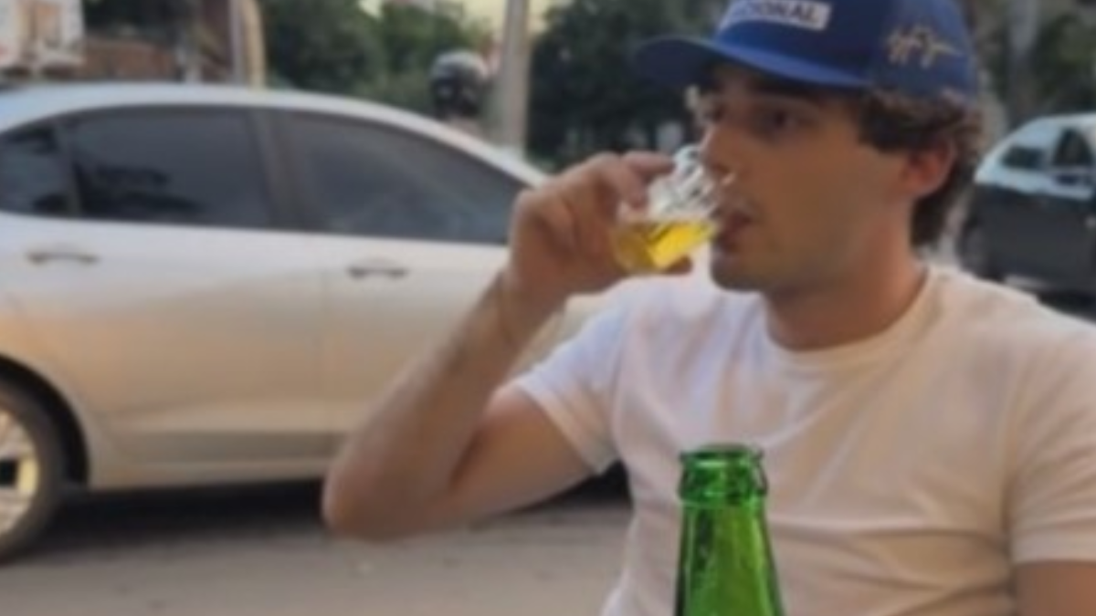 Em um dos vídeos dele que mais fazem sucesso no Tik Tok, o falso Senna cultiva um dos hábitos mais próprios da cultura goianiense: o de comer um espetinho e tomar uma cerveja em uma calçada da capital. Detalhe: Théo usa o boné azul com a logomarca do Banco Nacional, igual ao que o piloto utilizava.