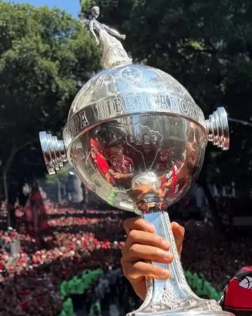 Taça da Libertadores aparece remendada com fita adesiva na festa do título do Flamengo; veja