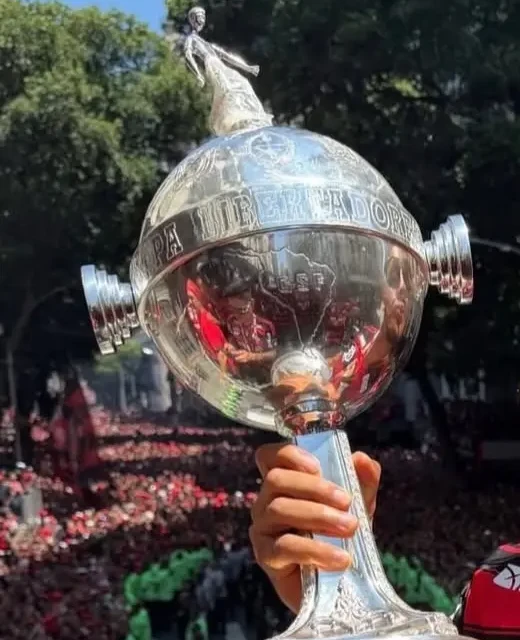 Taça da Libertadores aparece remendada com fita adesiva na festa do título do Flamengo; veja