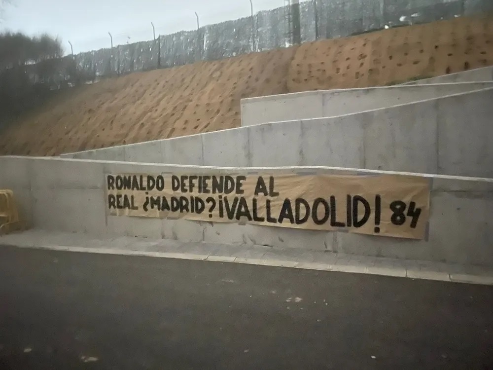 Uma das faixas fixadas ao muro dizia "Ronaldo defende o Real Madrid?". Na sexta passada, o Valladolid foi derrotado por 2 a 0 pelo Real