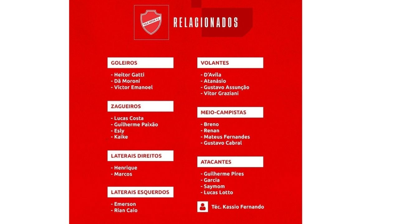 Em relação a primeira lista divulgada, foram cortados os seguintes jogadores: o goleiro Jhonatas, os zagueiros Artur Cassiano e Mateus Magallanes, o meia Riquelme e os atacantes Vitor Hugo, Igor Santos e Matheus Schmitz. O presidente do Vila Nova, Hugo Jorge Bravo, havia levantado a possibilidade do clube levar mais de 20 jogadores, o que segue sendo estudado pela comissão técnica.