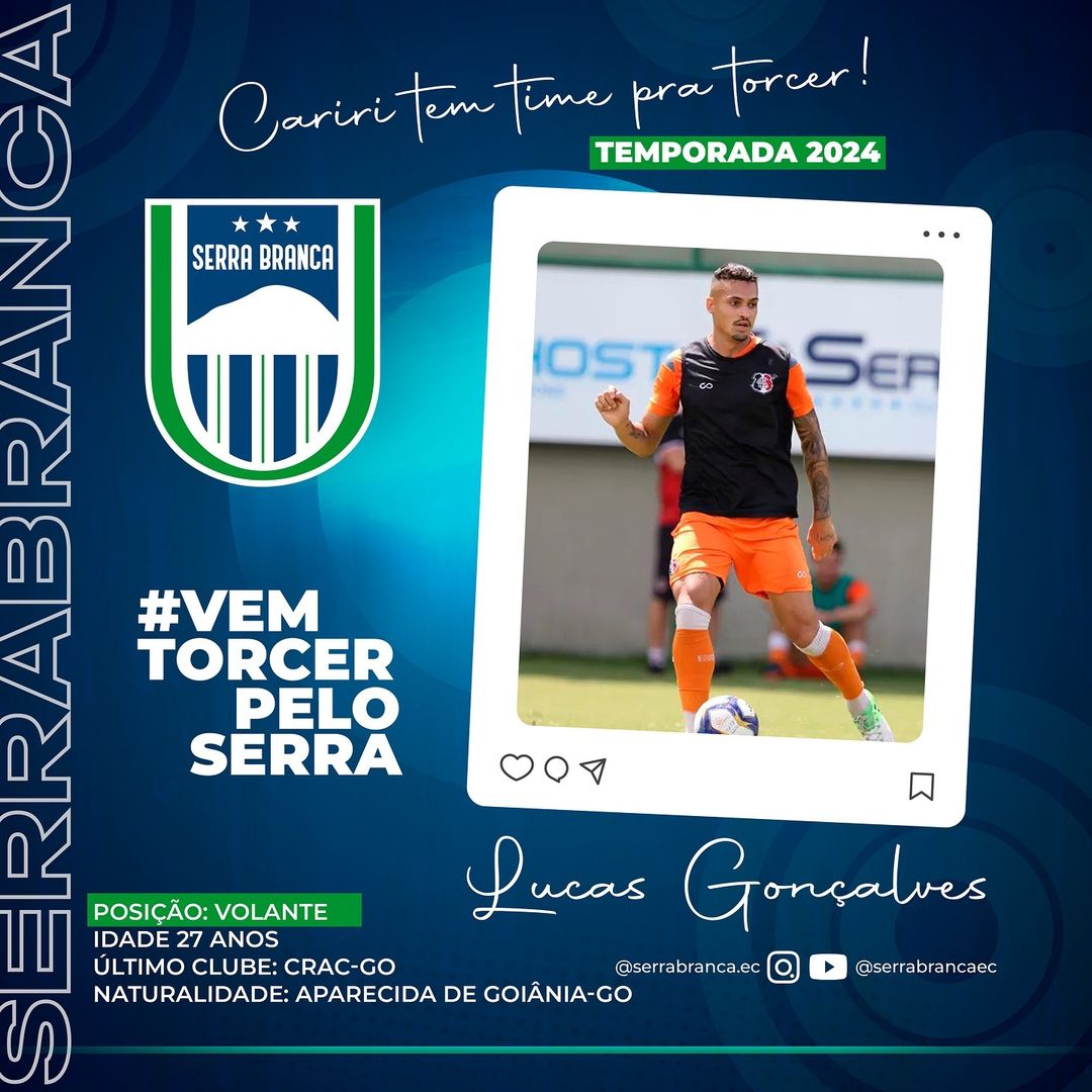 “O Serra Branca EC oficializa a contratação do volante Lucas Gonçalves para a temporada 2024. O novo reforço do Carcará, de 27 anos, vem do Crac-GO. […] Seja bem-vindo ao Carcará, Lucas Gonçalves!”, dizia A publicação.