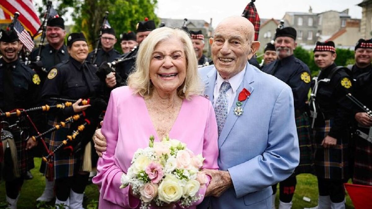 “Tenho 100 anos e minha noiva tem 96, e casar aqui em Carentan é incrível”, disse Harold Terens logo após a cerimônia na pequena cidade francesa, perto das praias onde milhares de soldados desembarcaram em junho de 1944, em um episódio que mudou o curso da história.
