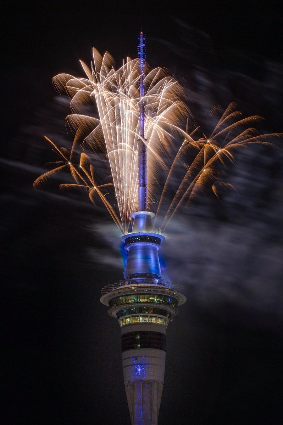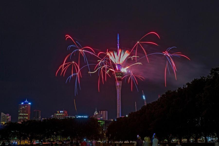 No pequeno país marítimo, a celebração ocorreu em Auckland, com fogos partindo da Sky Tower. Números iniciais falam de dezenas de milhares de pessoas durante a queima.