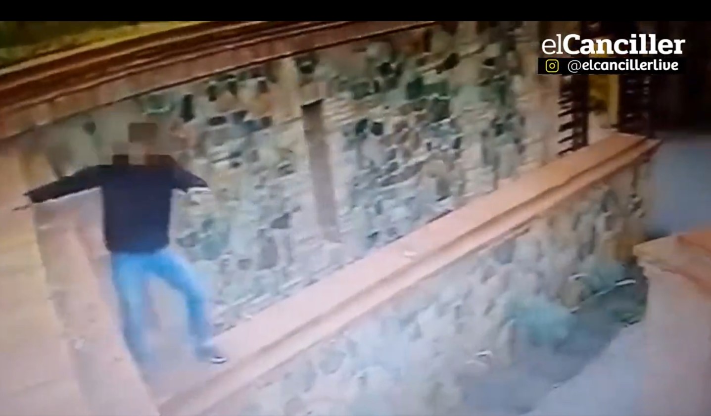Um vídeo divulgado na segunda-feira, 28, que gravou o momento da queda, mostra o homem descendo do terraço em direção a um muro. Ele desce se apoiando na parede do terraço, mas ao colocar os dois pés em cima do muro, perde o equilíbrio, escorrega e cai para trás.