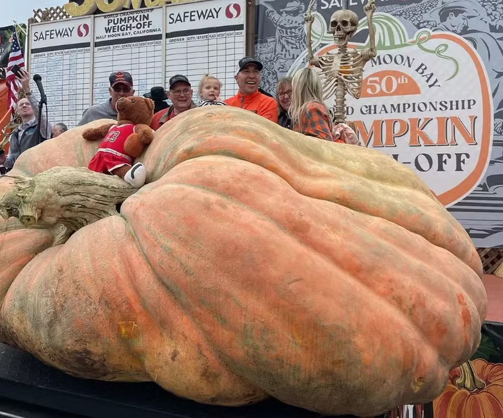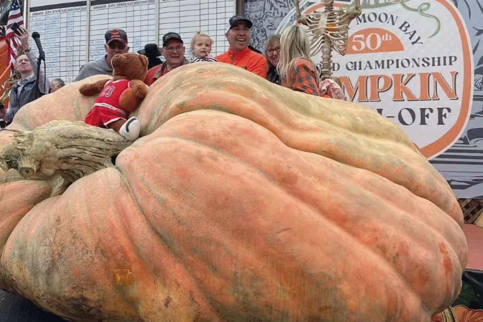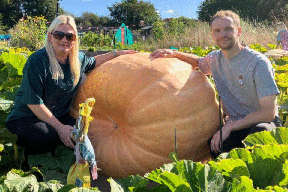 De acordo com o Guinness World Records, a maior abóbora gigante já registrada pesava 1.246,9 kg e foi cultivada na Califórnia, em 2023. O casal contou à emissora britânica que sua experiência na horta incluía cenouras e batatas, mas, segundo Justin, “as abóboras gigantes cresceram tanto que praticamente tomaram conta de tudo”.