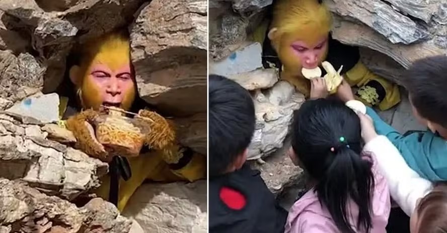 Chineses ganham salário para se vestir de macaco! Pessoas estão recebendo salário de R$ 6,8 mil para se vestir de Rei Macaco e ser alimentadas com bananas pelos turistas. Os “macacos humanos” podem relaxar em uma caverna aquecida, deitar em uma rede e aceitar presentes dos visitantes na área cênica de Taihang Wuzhishan (China).