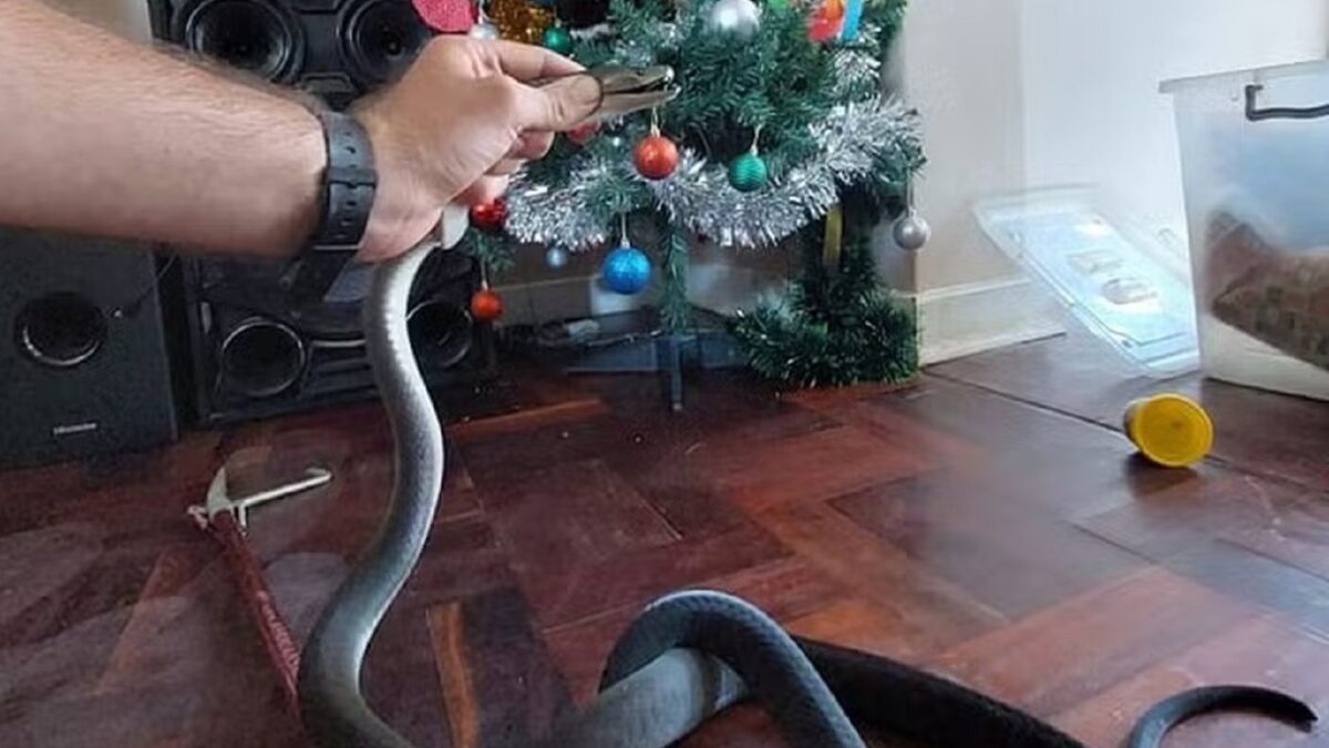 Cobra mais letal da África se esconde em árvore de Natal e apavora família