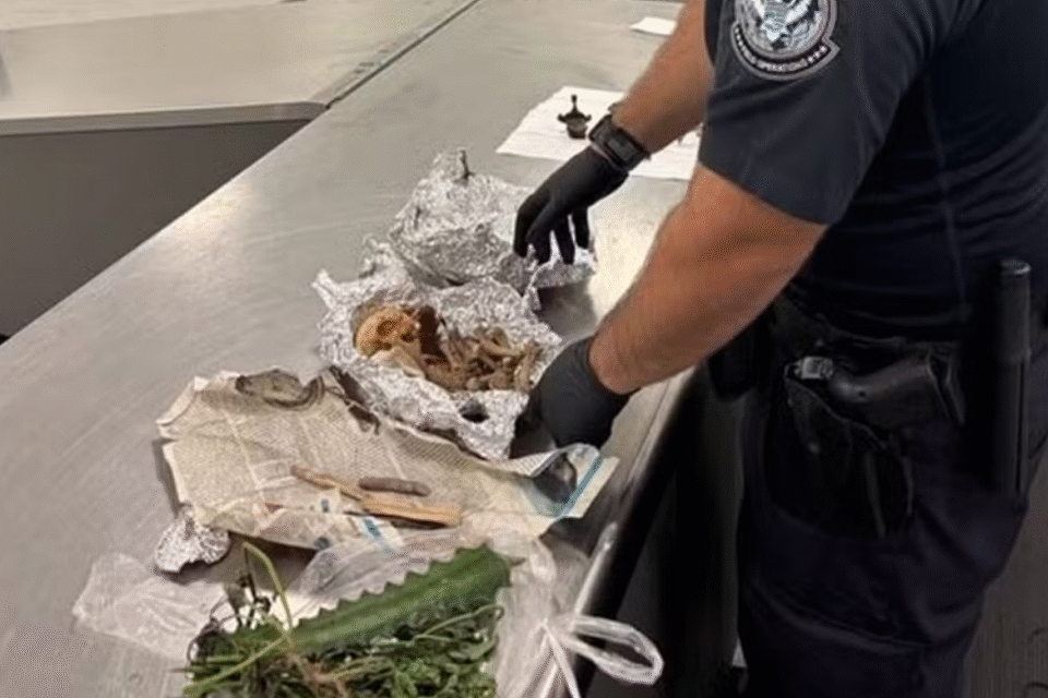 Segundo a alfândega, o passageiro havia declarado apenas 10 charutos, mas, durante a inspeção, agentes encontraram um crânio e ossos enrolados em papel alumínio, além de plantas proibidas. O suspeito teria alegado que os materiais seriam usados em um “ritual”, sem detalhar de que forma.