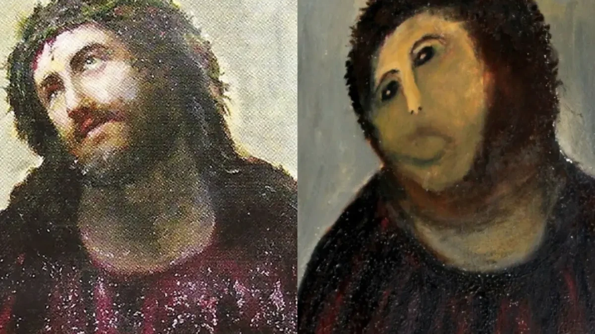 Quando foram atrás da pintura depois de receber a doação, viram que ela havia sido modificada. Uma mulher vizinha da igreja, localizada na cidade de Borja, ao ver que a obra estava danificada, resolveu restaurá-la “sem pedir permissão”, mas “com boas intenções”. Ela confessou o fato às autoridades.