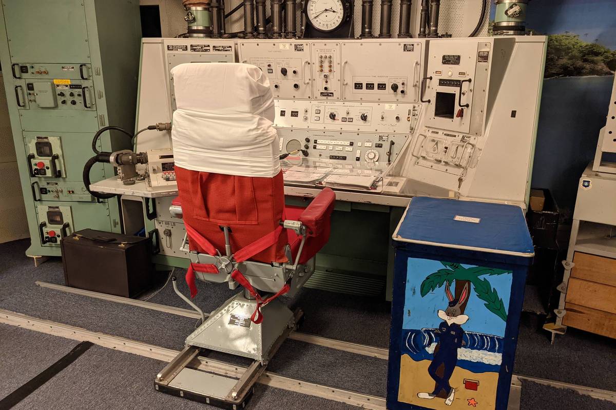A caneca branca do então capitão Warren Tobin ainda descansa na mesa de trabalho, com um painel cinza à frente repleto de botões e um telefone preto acoplado. Há também um caderno protegido por uma estrutura de acrílico e uma cadeira vermelha com um aviso de não sentar.