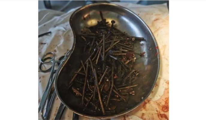 Médicos retiram 1 kg de pregos e parafusos de estômago de paciente