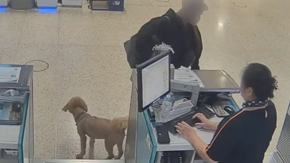 Em seguida, a mulher teria amarrado o cachorro a um poste metálico próximo ao balcão e seguido para a área de segurança e o portão de embarque.
