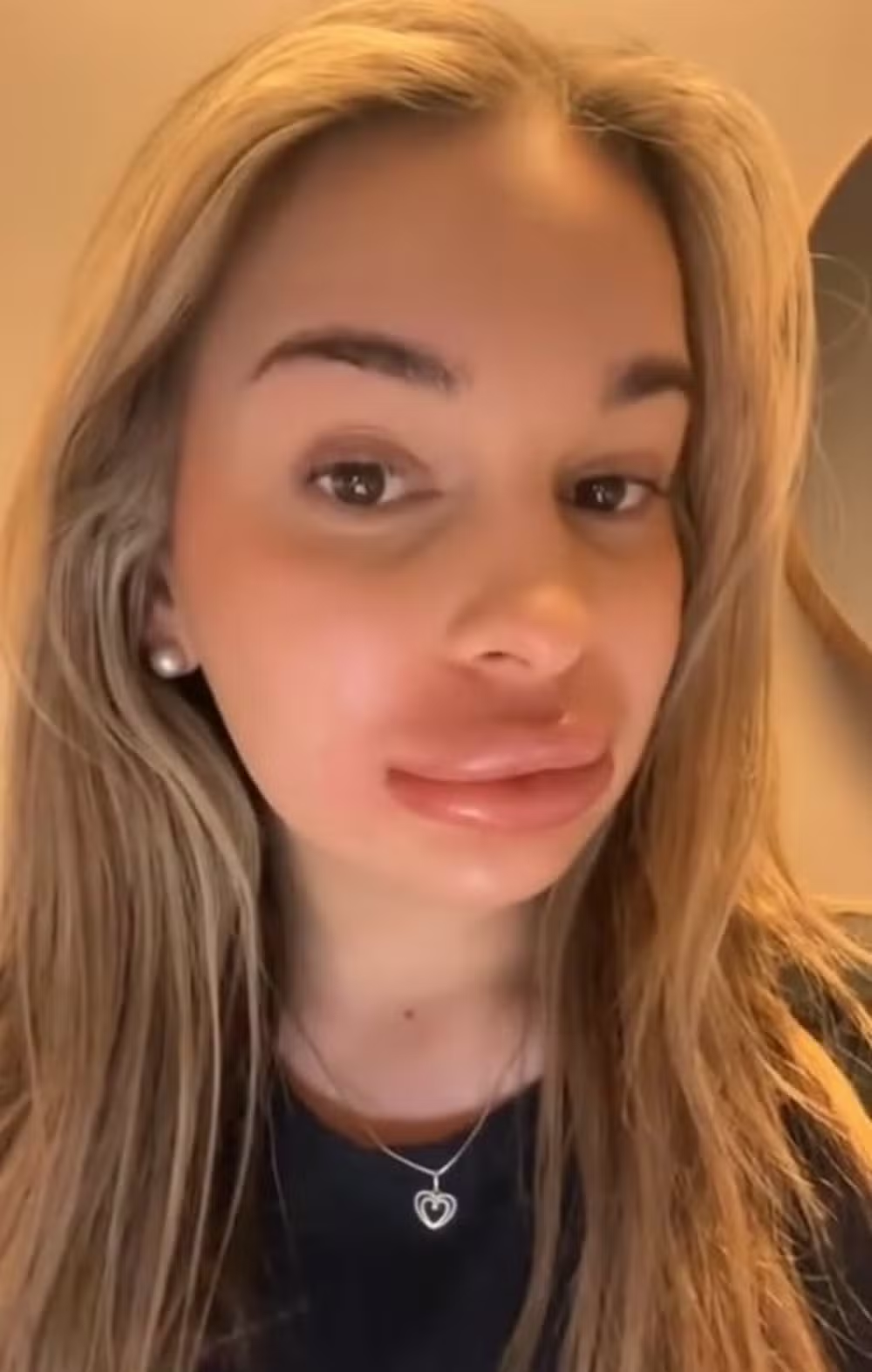 Com lábios extremamente inchados, ela teve que usar máscara por vários dias